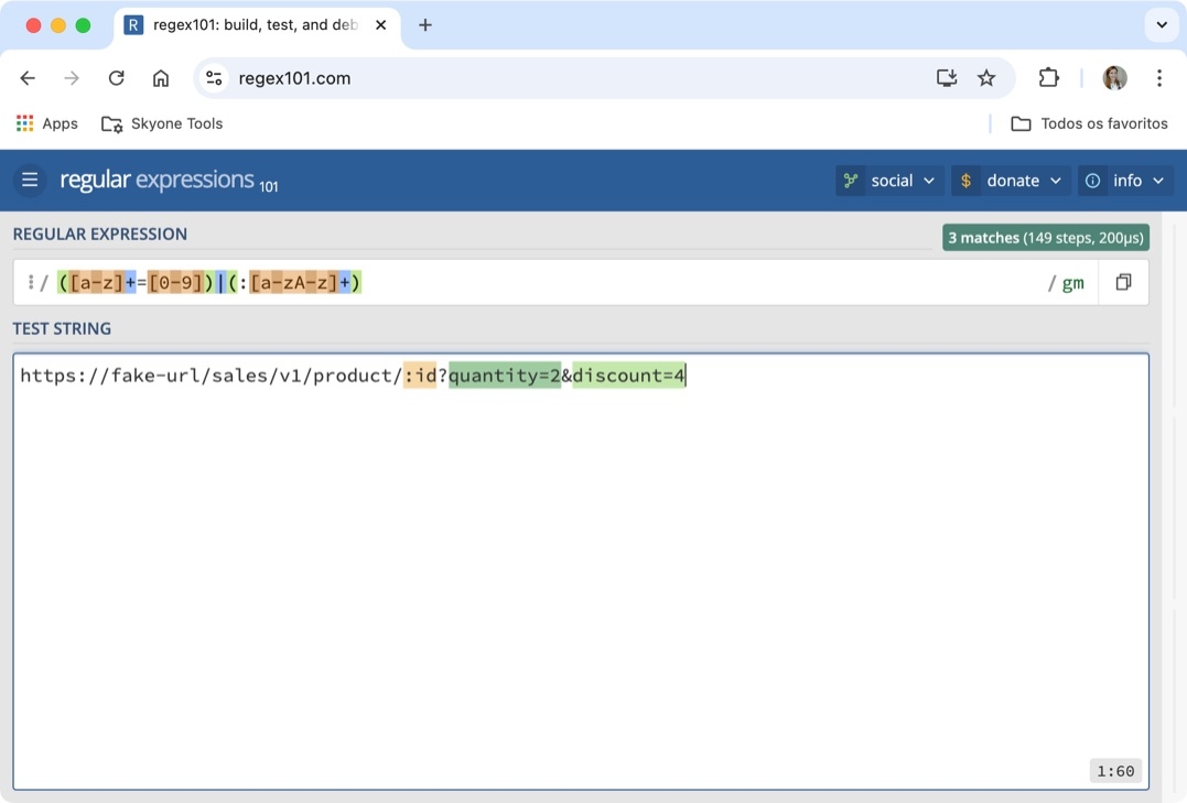 By analyzing the structure, we can see that the :id parameter has been replaced with "23", and the query parameters quantity and discount have been added.