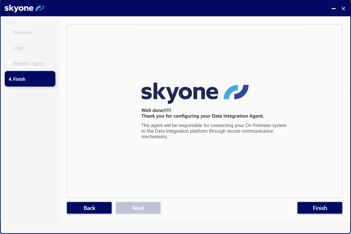 It is possible to close the Agent window without compromising the use of Skyone Data. However, the computer must be powered on for communication to take place.