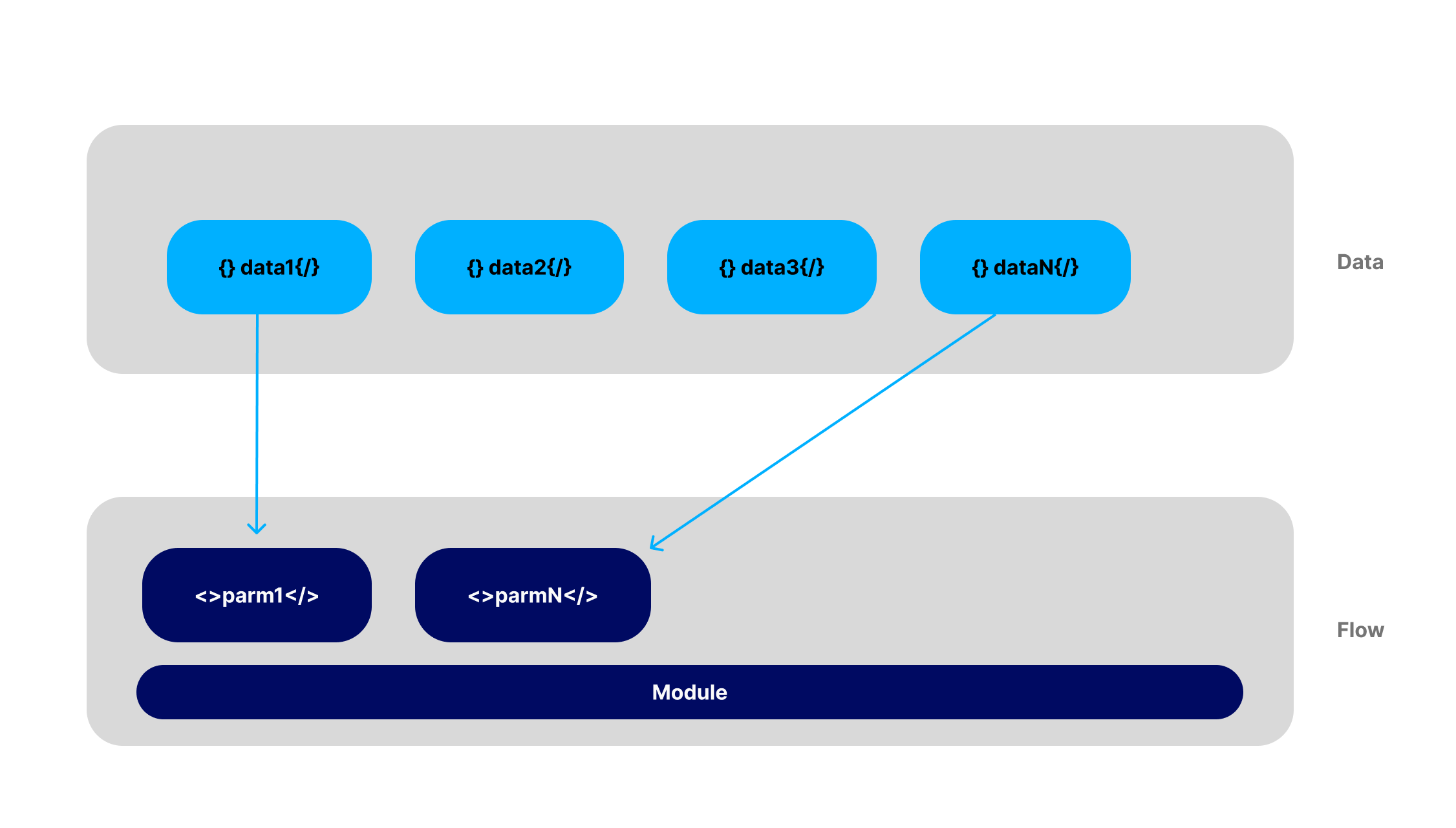 A medida que o fluxo é executado, o plano de dados vai recebendo todos os dados que os módulos obtêm. Eles se tornam imediatamente disponíveis para serem consumidos pelos parâmetros dos módulos subsequentes.