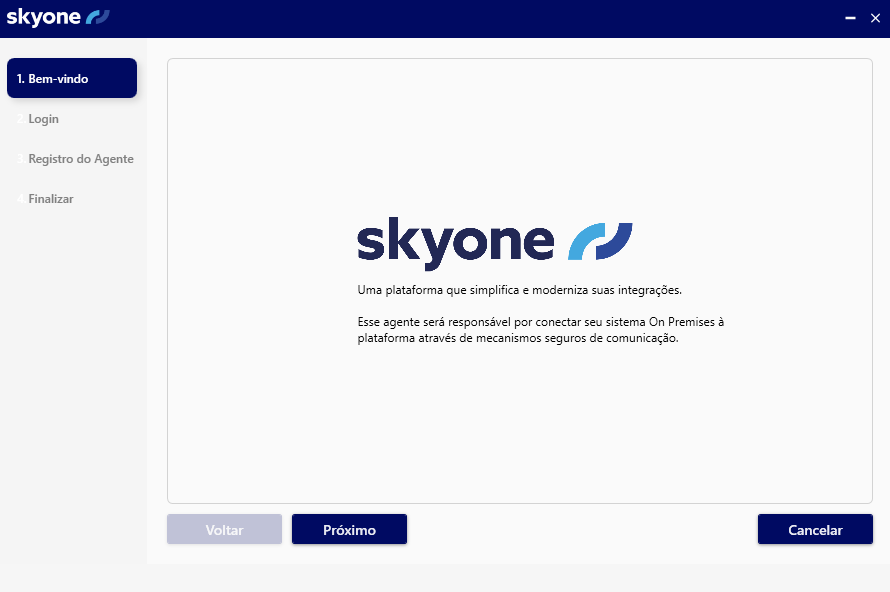 Partindo deste conceito, criamos o "Agente", uma extensão segura do Skyone Studio que pode ser instalada em ambientes On Premises, utilizando-se de mecanismos seguros de comunicação. Quando utilizado, o "Agente" é um componente passivo, apenas executando requisições enviadas por softwares externos ou automatizadas no Skyone Studio.