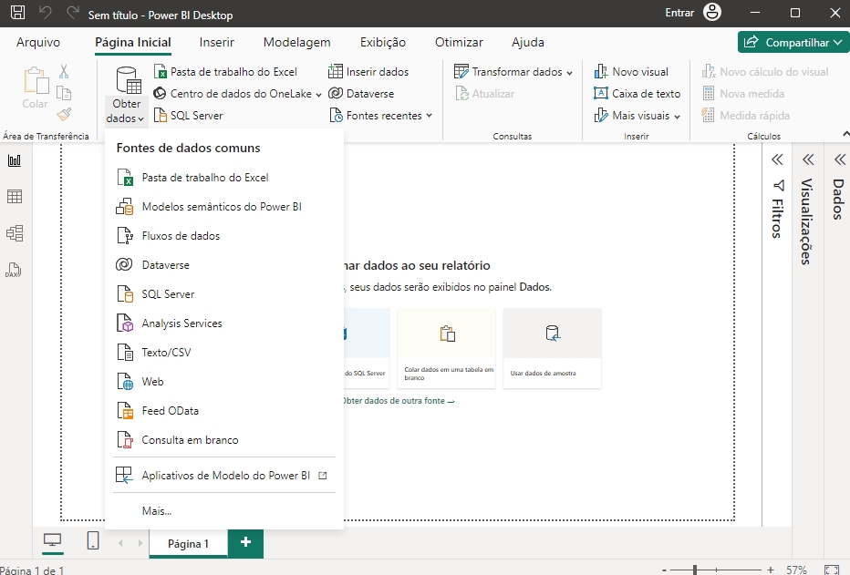 Para inserir os dados no Power BI, siga os passos abaixo: